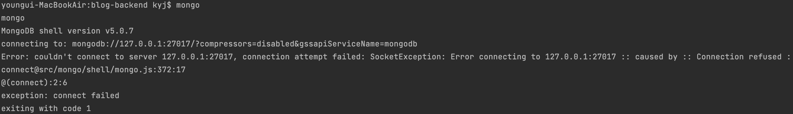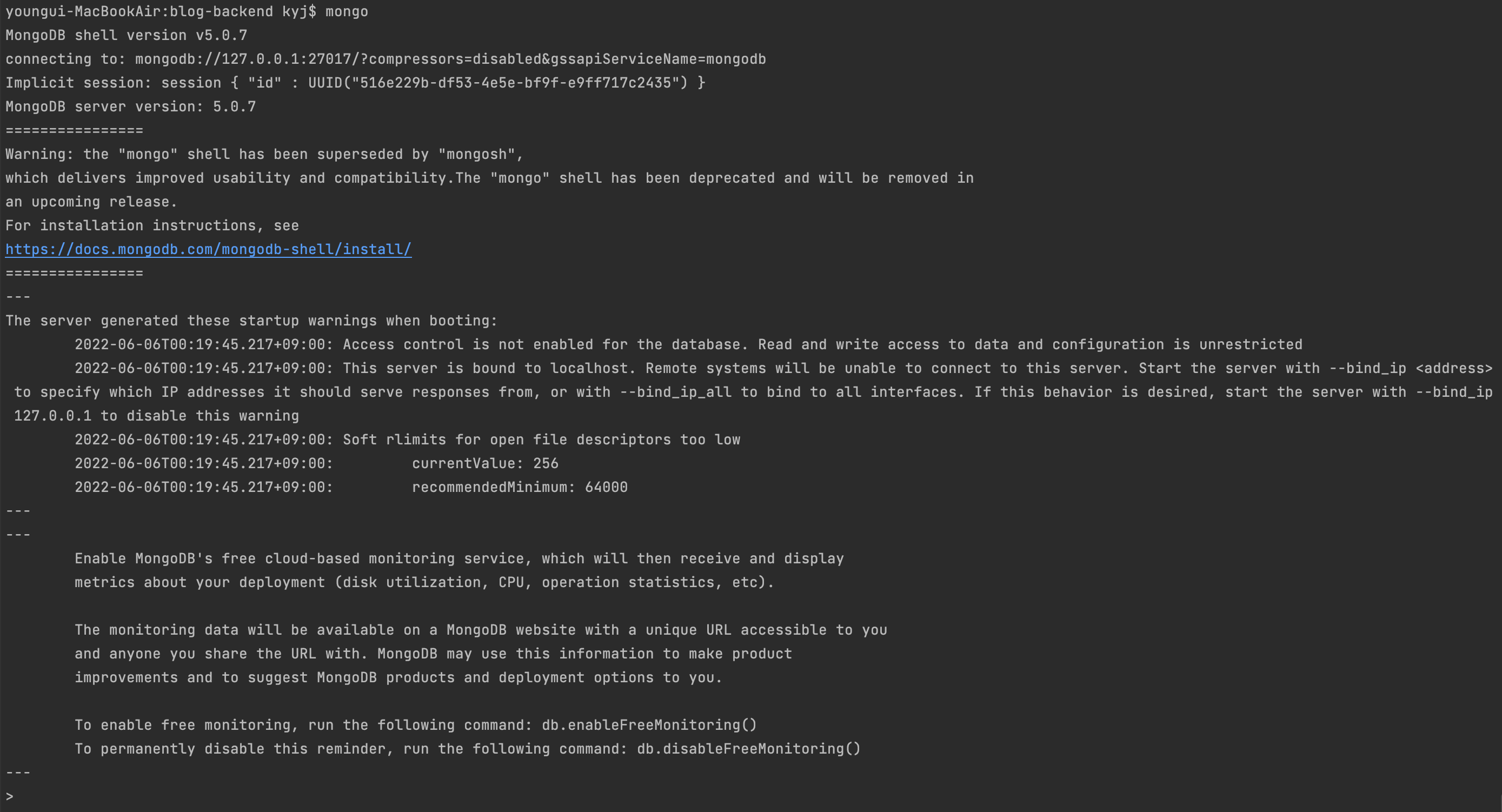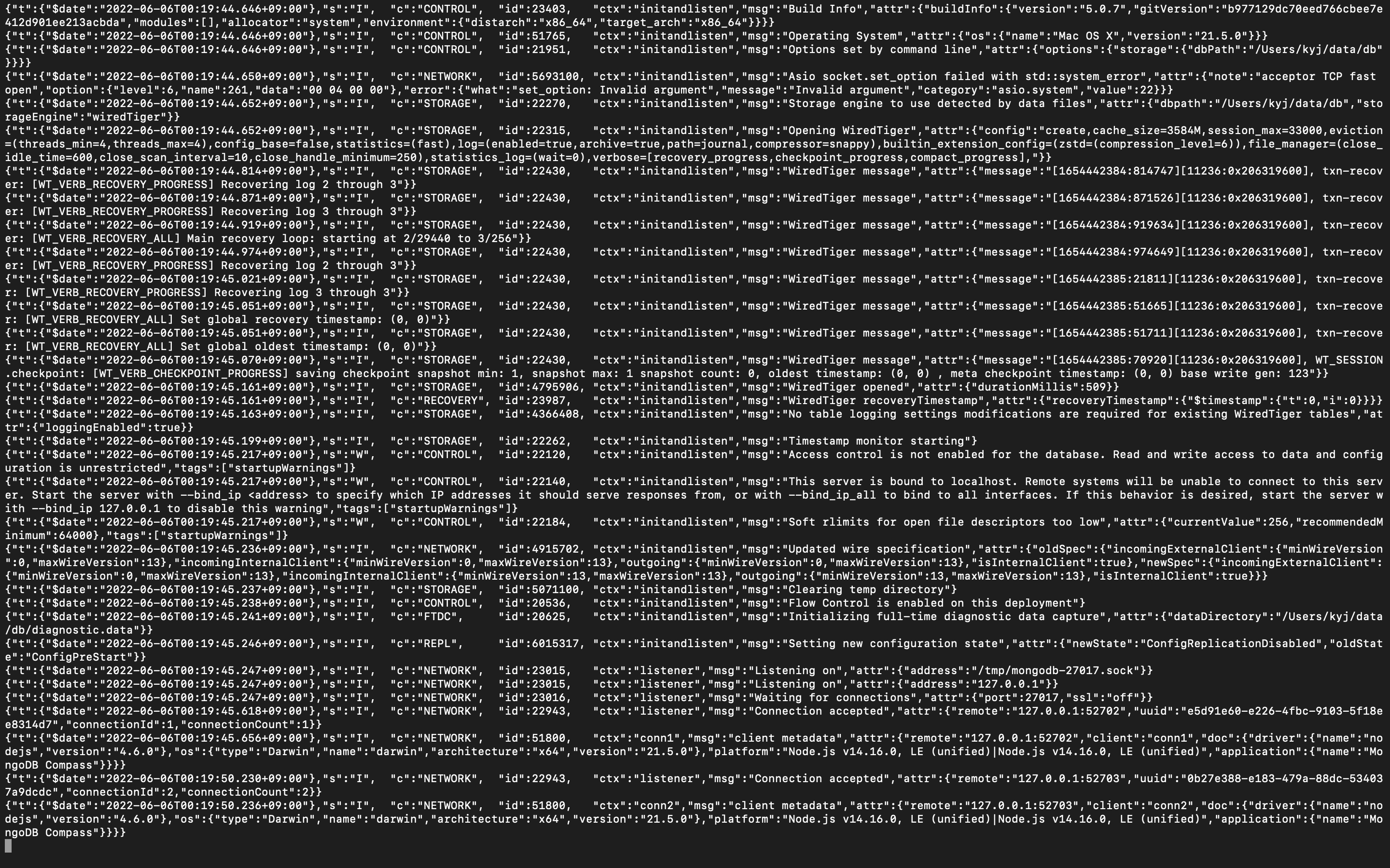 본론으로 들어가서, 위의 이미지는 Mac 환경에서 MongoDB를 설치하고 $mongo를 실행하면서 발생한 오류다.